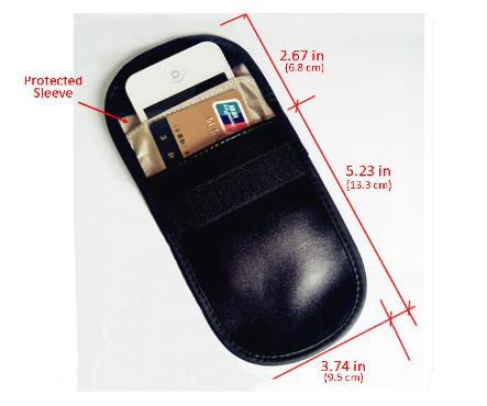 Cell phone spying software is easily available on the internet for anyone to spy on you. The only way to ensure that your phone is not listening or tracking you is to remove the batteries. Some phones like the iPhone this is not easily done. Placing the cell phone inside the Sentry will stop the tracking and the eaves dropping. This special RF blocking pouch blocks radio frequency electromagnetic fields so that your location cannot be tracked or your data intercepted or your conversations overheard. These RF blocking pouches work by having a conductive fabric which completely surrounds the device or ID card. This conductive fabric forms what is known as a Faraday Cage which stops radio signals from coming into or leaving the device. The pouch has two pockets, when the cell phone is placed in the "back" silver pocket sleeve all signals will be blocked. If the phone is placed in the front pocket the phone will send and receive signals normally while still physically protecting your phone. Tracking is accomplished by triangulation of cell phone towers or finding a Wi-Fi network. The cell phone does not need to have GPS capabilities to determine its location. Placing the cell phone in the Sentry pouch will completely stop the tracking and the eavesdropping by unauthorized snoopers.